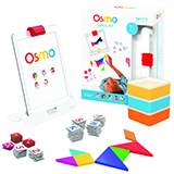 OSMO attaches to an iPad and allows children to interact with the screen by manipulating objects in front of the iPad. This kit comes with several educational games for children to play. iPad not included.