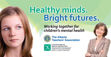 The Alberta Teachers’ Association is partnering with the Canadian Mental Health Association (CMHA) to promote the positive mental health of children and youth in an initiative entitled Healthy Minds. Bright Futures. The project aims to increase awareness about the mental health needs of children and to decrease the stigmatization often associated with mental illness.