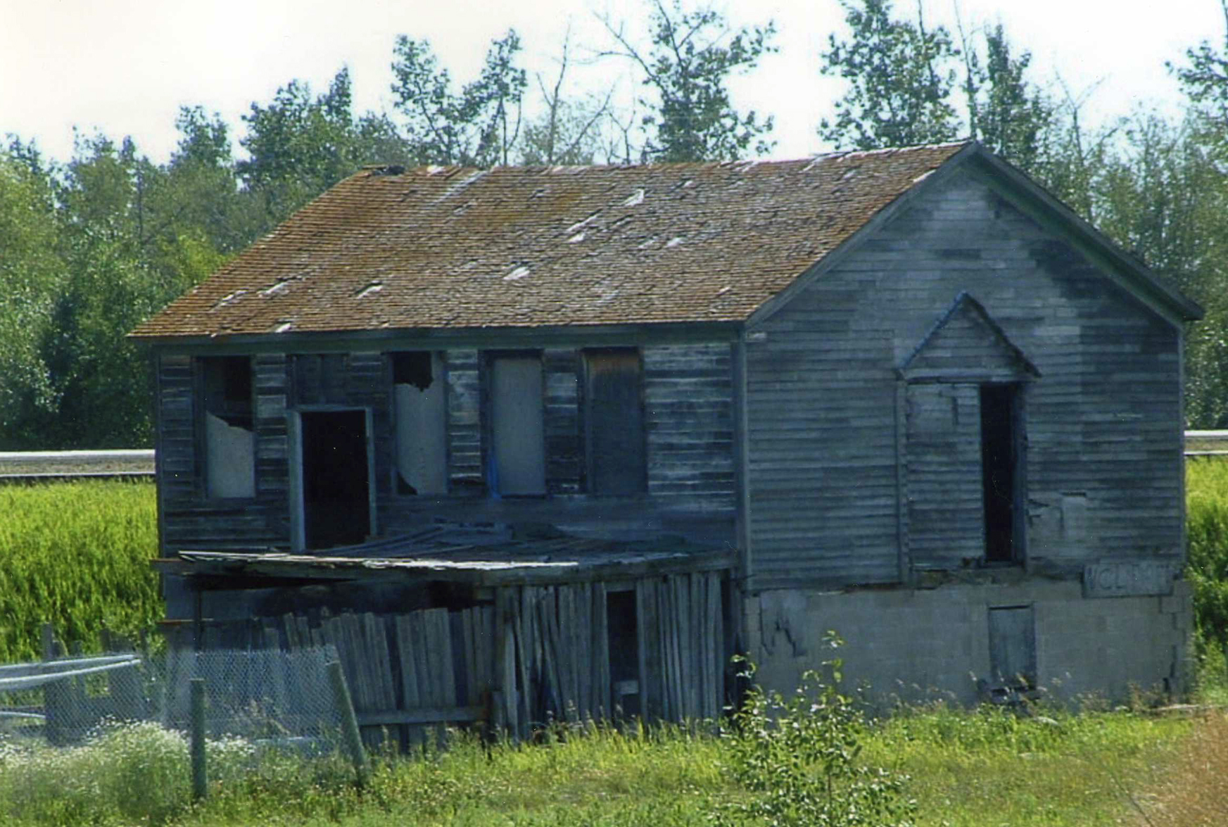 Deville-North Cooking Lake School Located north of Wye Road and east of Range Road 205, east of Sherwood Park. Relocated to west of Range Road 210 and still visible from Wye Road—now used for storage. — Photo courtesy of Alger J.C. Libby |