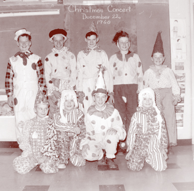 Forty-seven years ago, students attending Esther School, in Esther, Alberta, dressed up in clown costumes made by their mothers and performed in the school’s annual Christmas concert.