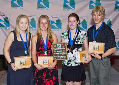 Featured here are team members (left to right) Crystal Spilchen, Jessica Fritzke, Krista Bruce and Erich Andersen. Not shown is team member Kase de Vries. Staff advisors are Katie Marie-Drummond, Don Student and Liana Hall.