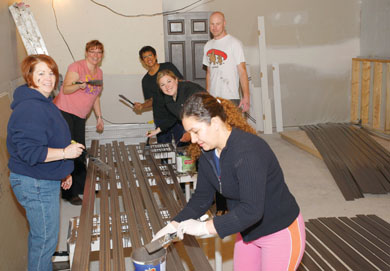 Featured here are staff from St. Clement School, in Grande Prairie: Kathleen Walsh (left front), Lisa Teichroeb (left back), Aum Nicol (middle back), Rob Millen (far right), unidentified teacher (right middle) and Mrs. Gonzalez (right front), mother of the family that will move into the house. Some of Mrs. Gonzalez’s children are being taught (or have been taught) by teachers from St. Clement School