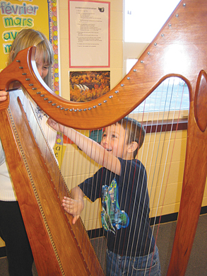Students attending École Mountain View School, in Hinton, were treated to a lesson on the harp by a local musician. "I just love the smile on my student’s face as he runs his fingers across the strings," commented teacher and photographer Jennifer Dodsworth.