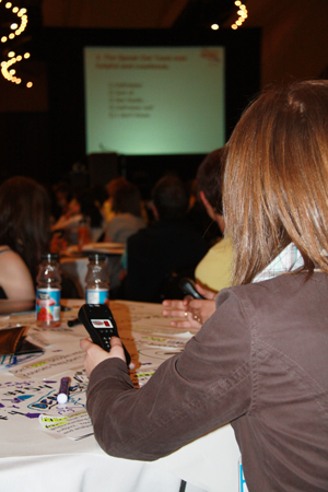 By the end of the day, the students had generated 50 recommendations on eight themes. As the recommendations on each theme were presented, they voted for the one recommendation they deemed most important, using an electronic keypad.