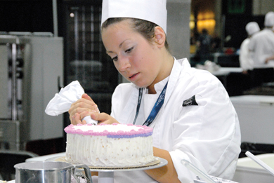Viktoria Sulz, a student at St. Albert Catholic High School, competes in the baking event at the Provincial Skills Competition, in Edmonton. —Photo by Koni Macdonald
