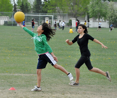 Playing kickball is just one way that students in Alberta can participate in the provincial goal of daily physical activity. The goal is based on the beliefs that healthy students are better able to learn and that school communities provide supportive environments for students to develop the habits needed for a healthy and active lifestyle. Requirements for daily physical activity state that activities should vary in form and intensity, take into account each student’s ability, consider resources available within the school and the larger community, and allow for student choice.