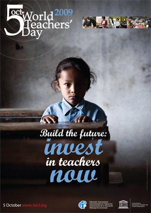 October 5 is a day to celebrate teachers and the central role they play in guiding children, youths and adults through the life-long learning process. This year, World Teachers’ Day will focus on the role of teachers within the context of the global financial and economic crisis and the need to invest in teachers now as a means to secure post-crisis regeneration.—Education International