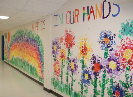 Students and staff, after returning to school after a two-week evacuation of our community in May, created a colourful and symbolic tribute mural. At C.J. Schurter we believe that hands and handprints signify assistance, support, effort, encouragement, recognition and healing.