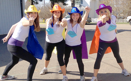 Superheroes with Park Plains East Local 31 prepare to battle mental illness. The VES (Vermilion Elementary School) Superheroes team (left to right: Jana McLaughlin, Trisha Rawlake, Rebecca McCullough and Hallie Zaharko) participated in an Amazing Teacher Activity Race and wore hats in support of the Alberta Teachers’ Association’s Hats on for Mental Health initiative.