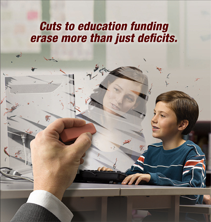 stop the cutsThe website is a component of the Alberta Teachers’ Association’s September 6 to October 9 media campaign asking parents and the public to contact the provincial government and to voice their concerns about cuts to education funding. The ATA, in partnership with the Alberta School Boards Association and the Alberta School Councils’ Association, is running TV, radio and online advertisements to raise awareness about the funding shortfall.