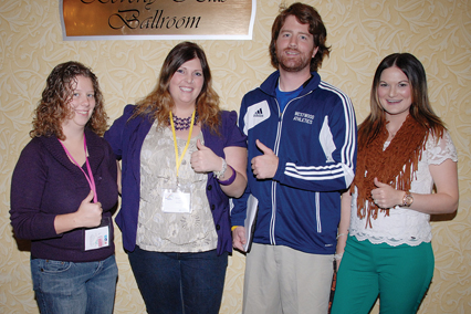 Teachers (left to right) Ashley Tindall, Courtney Mack, James Harline and Jamie Brochu give a thumbs-up for the ATA’s Beginning Teachers’ Conference, held at Fantasyland Hotel, in Edmonton, September 27–29, 2012. Approximately 700 teachers attended the event, which featured presentations designed to help ease the first year of teaching.