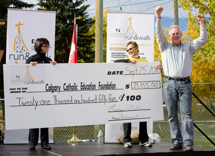 The second annual Calgary Catholic Run and Walk, held September 25, 2010, was a huge success. Staff, families, close friends and parish priests gathered at the Glenmore Athletic Park for a five- or ten-kilometre run or walk, as well as a Little Legs Race for children. The route took advantage of the beautiful stadium and city pathways around the Glenmore Reservoir and River Park. The focus was on community participation in a healthy activity.