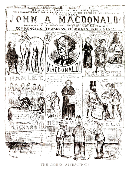 Source: A caricature history of Canadian politics: events from the union of 1841, as illustrated by cartoons from Grip and various other sources by J.W. Bengough, Grip Print. and Pub. Co., Toronto, 1886. Library and Archives Canada